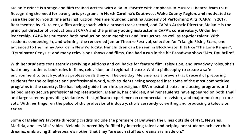 © Copyright 2017-2025.  All Rights Reserved.   Carolina Academy of Performing Arts, Inc.  MyCAPA.org